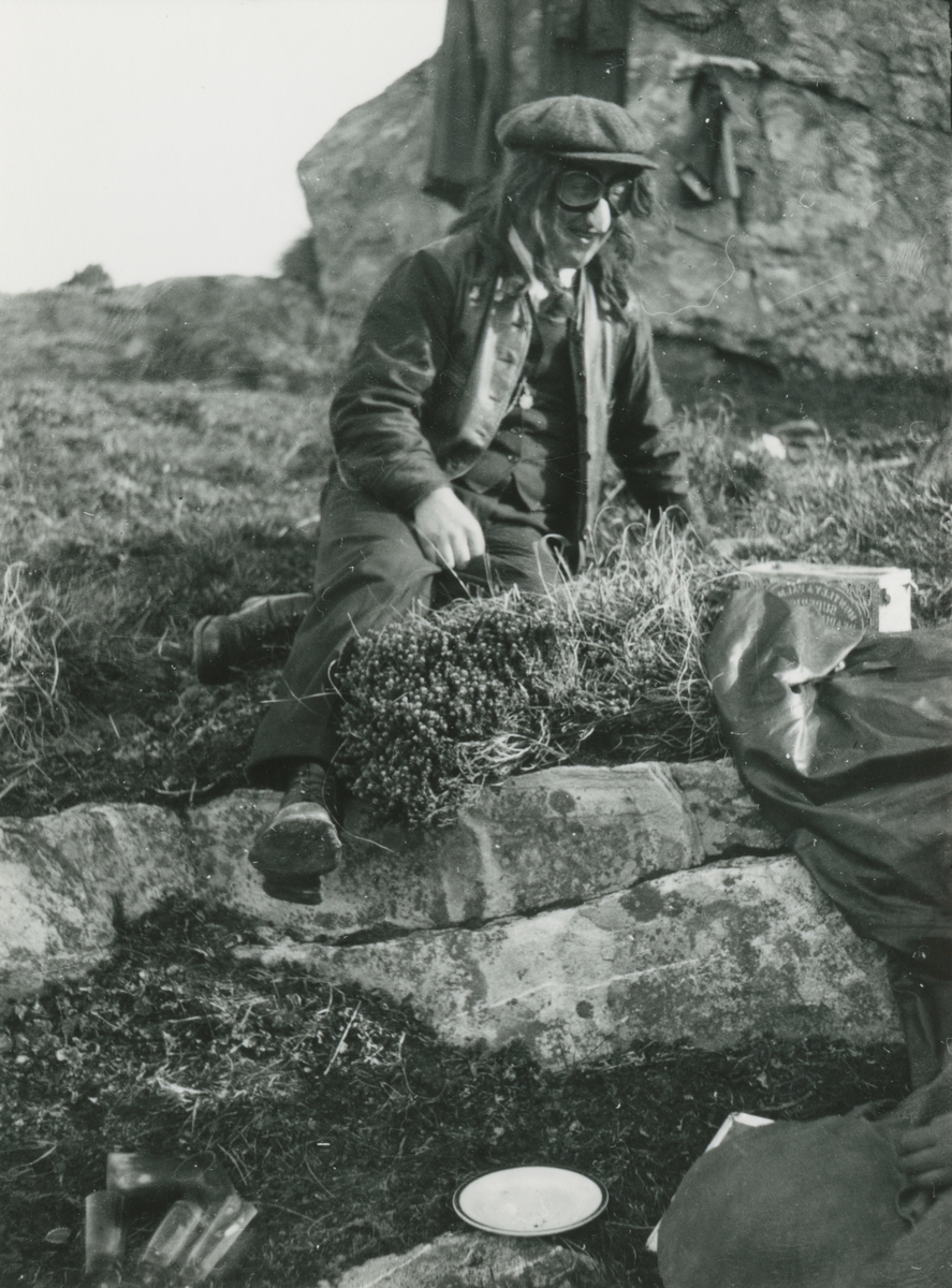 Bild från expedition i Antarktisområdet. Motiv av man iklädd lösnäsa och peruk.