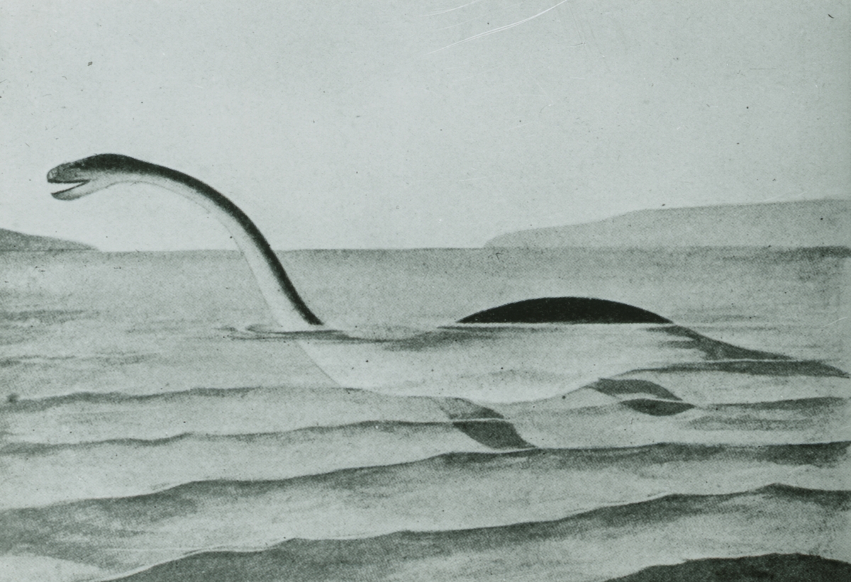 Glasnegativ med motiv av sjöorm/sjöodjur i havet.