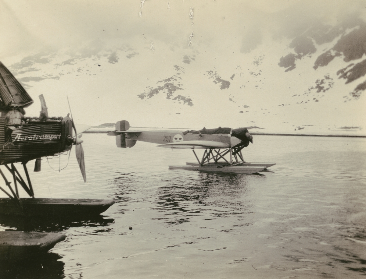 Fotografi från svenska undsättningsexpeditionen 1928. Motiv av två flygbåtar i Virgo Bay, 1928.