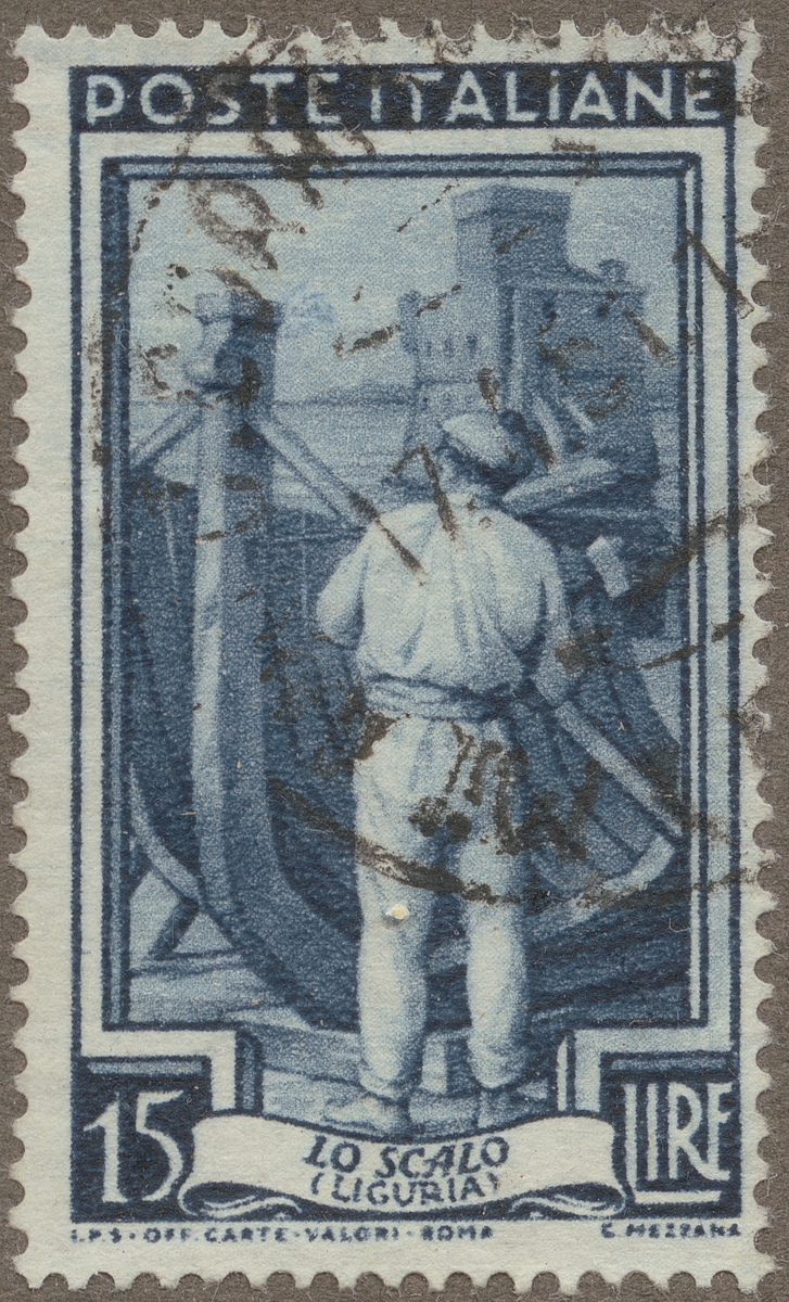 Frimärke från Italien, 1950. Motiv av Italiensk båtbyggare från Ligurien