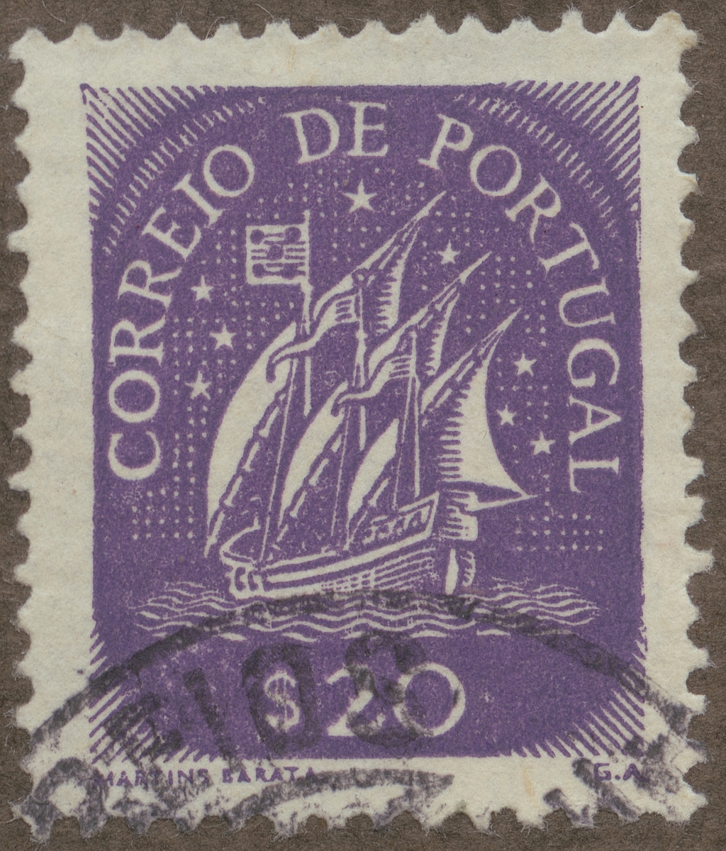 Frimärke från Portugal, 1942. Motiv av Gammal Karavell