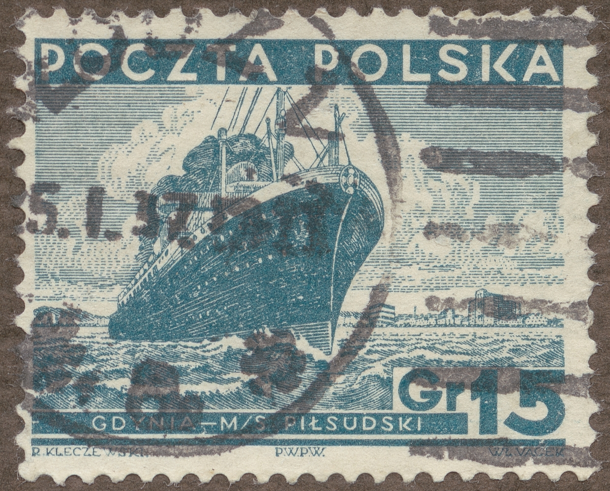 Frimärke från Polen, 1935. Motiv av Polska M/S "Pilsudski"
