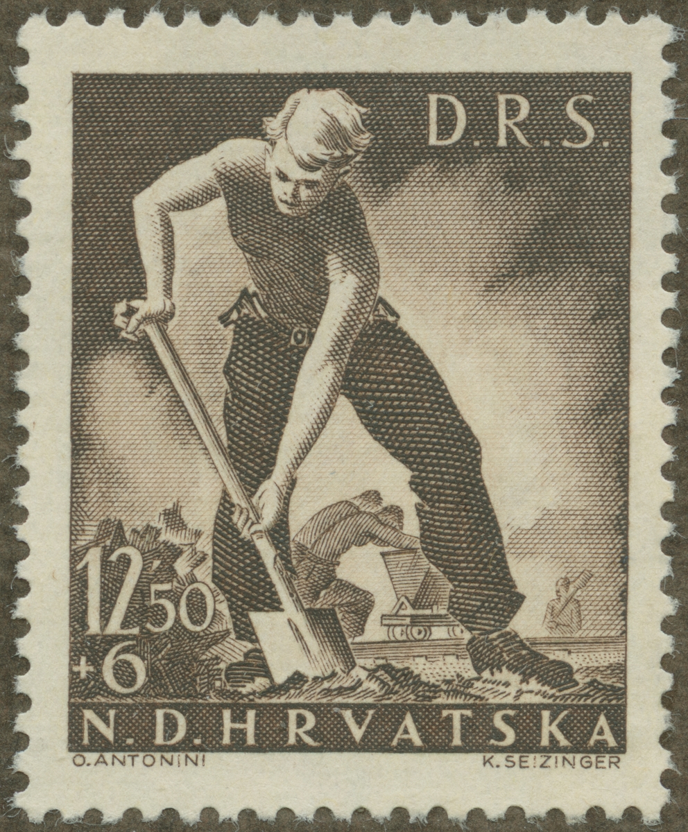 Frimärke från Kroatien, 1944. Motiv av Terraseringsarbete i Kroatien