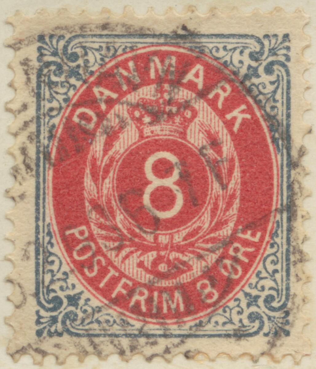 Frimärke från Danmark, 1875. Motiv av Sädes-Ax