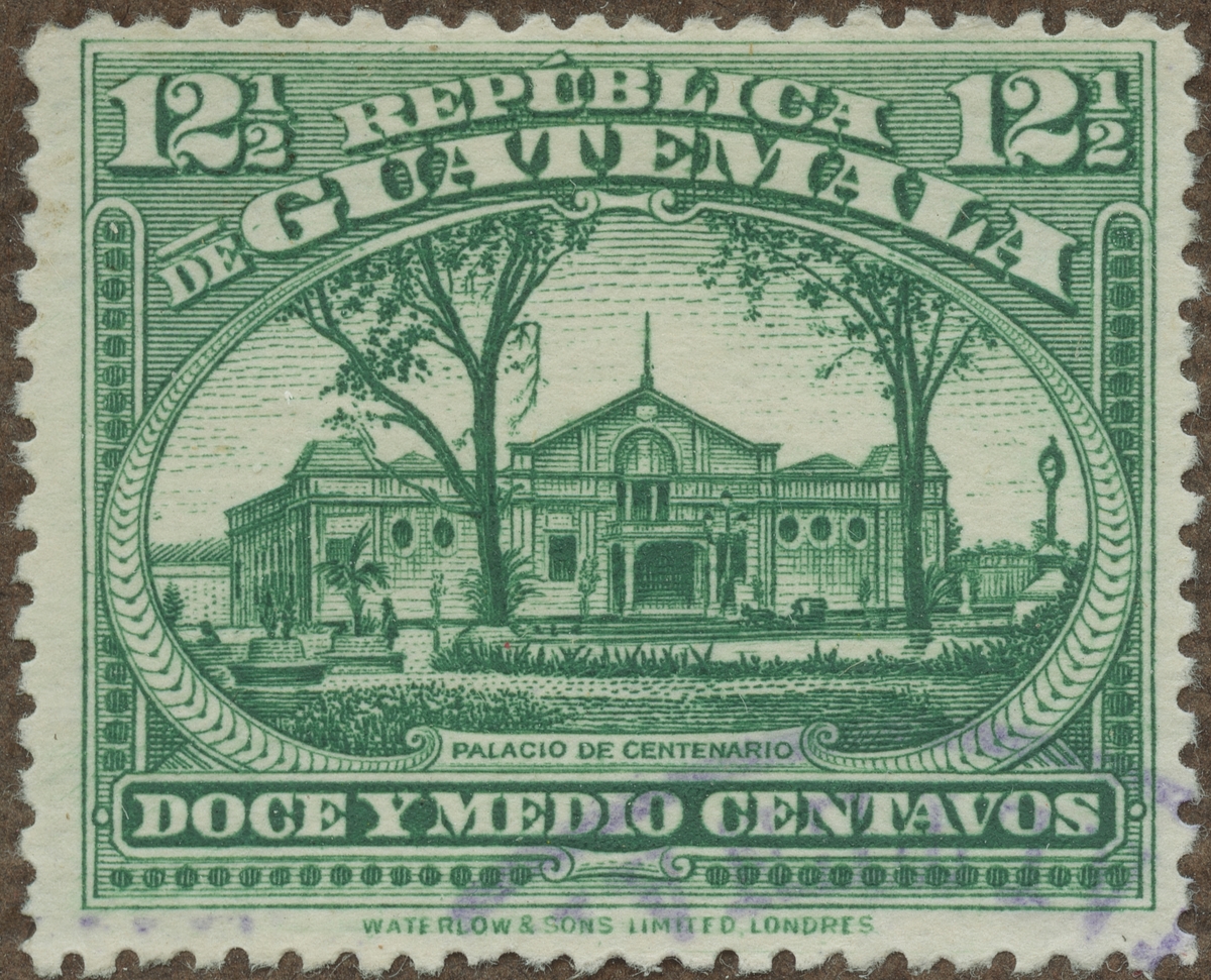 Frimärke från Guatemala, 1922. Motiv av "100-årspalatset" i Guatemala Minne av 100 års oberoende