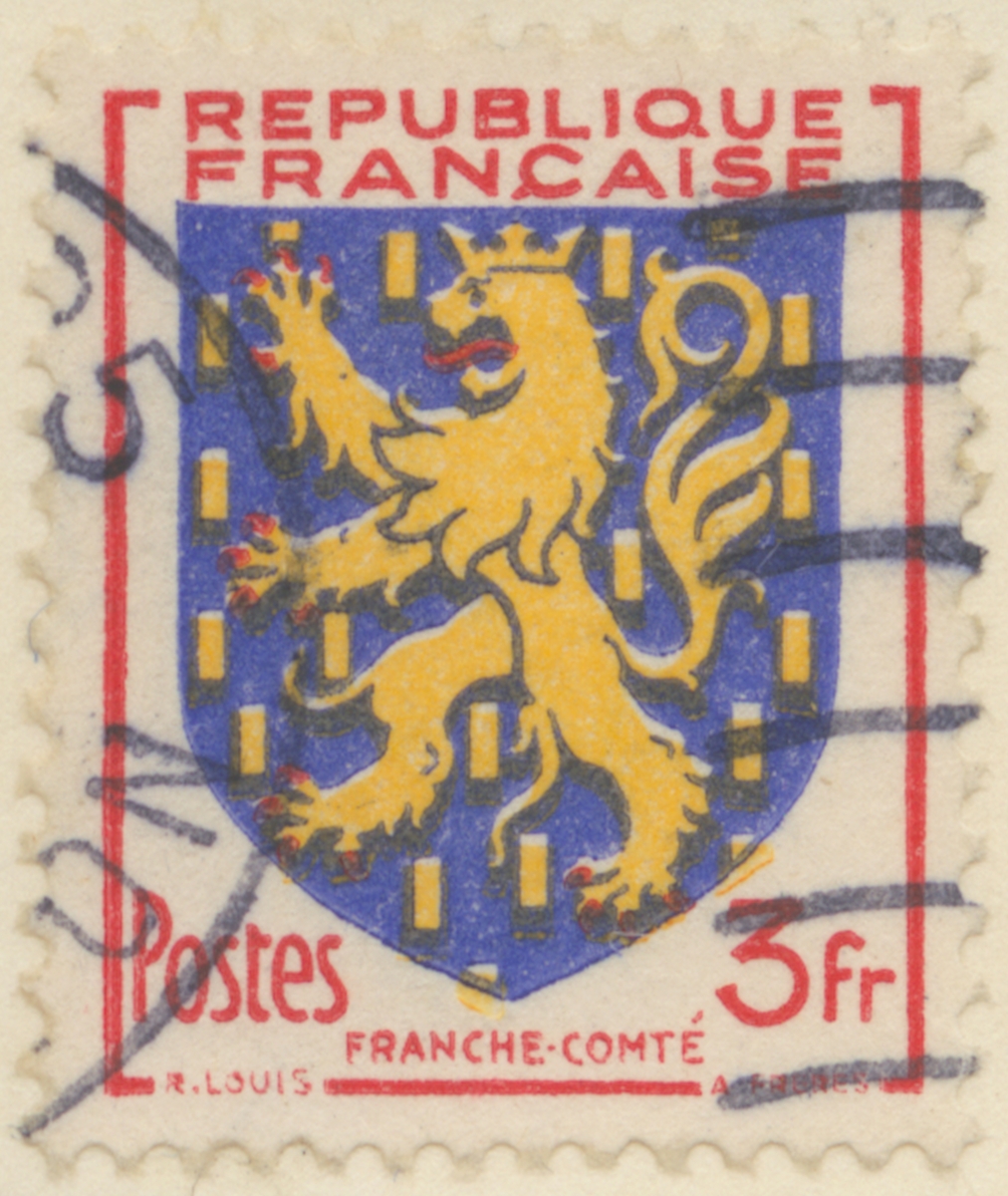 Frimärke från Frankrike, 1951. Motiv av Vapen: Franche Comté "-Serie: franska provinsers vapen-"
