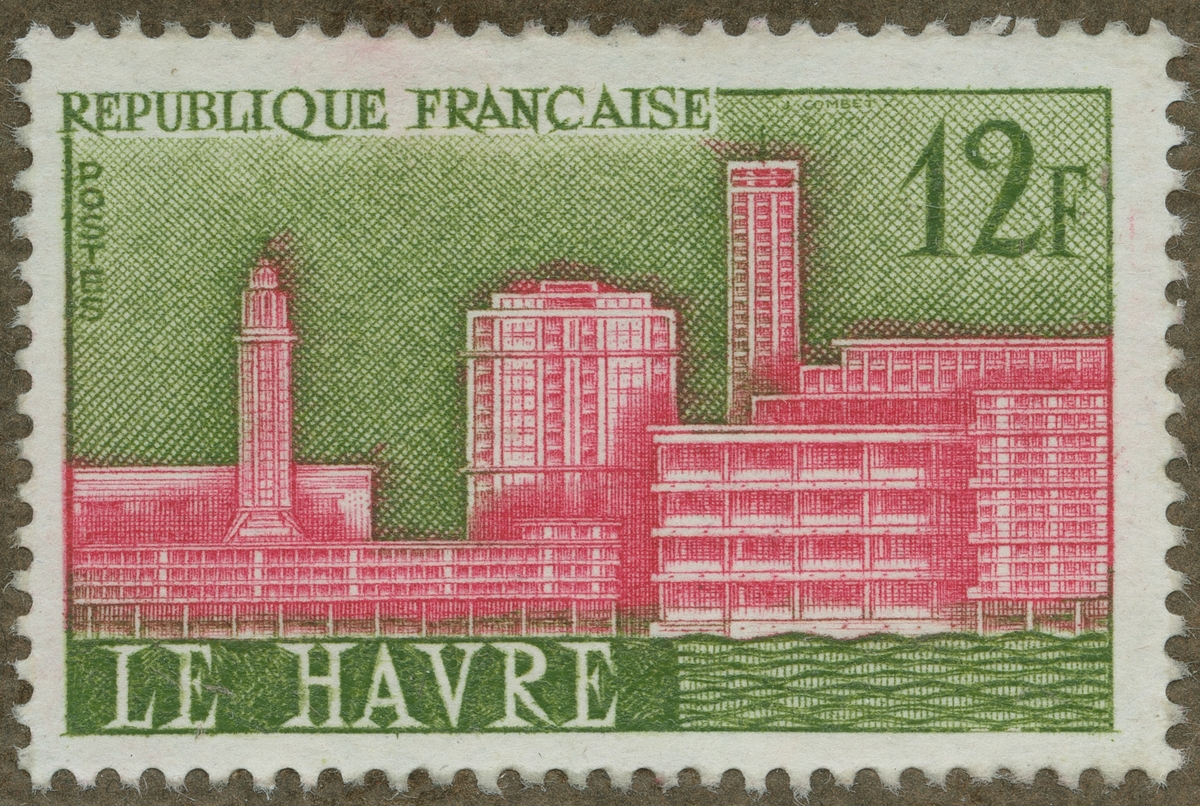Frimärke från Frankrike, 1948. Motiv av Le Havre Stadsbild "-Serie: återuppbyggnad efter världskriget II-"