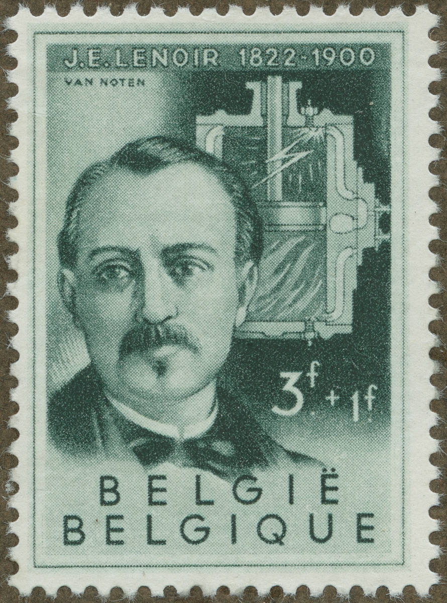 Frimärke från Belgien, 1955. Motiv av J. E. Lenoir: 1822-1900 Motorkonstruktör "Serie: belgiska uppfinnare"