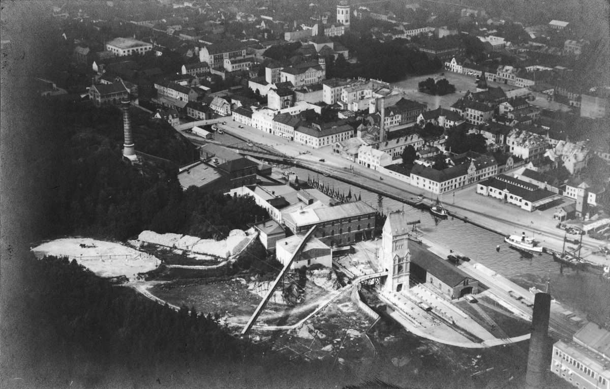 Flygfotografi över Råsockerfabriken i Karlshamn.