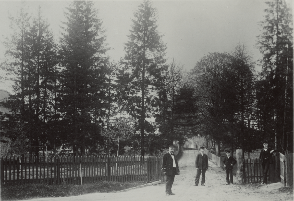 Bruksgatan i Limmared. Sedd från Söder ca 1905. Ur album: Limmareds Glasbruk 1740-1902-1930.