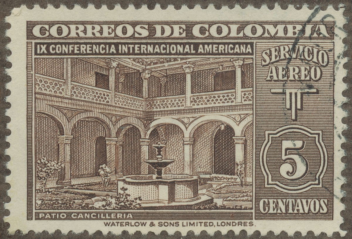 Frimärke från Colombia, 1948. Motiv av Patio Cancilleria i Bogota 9. Internationella Amerikanska Kongressen 1948