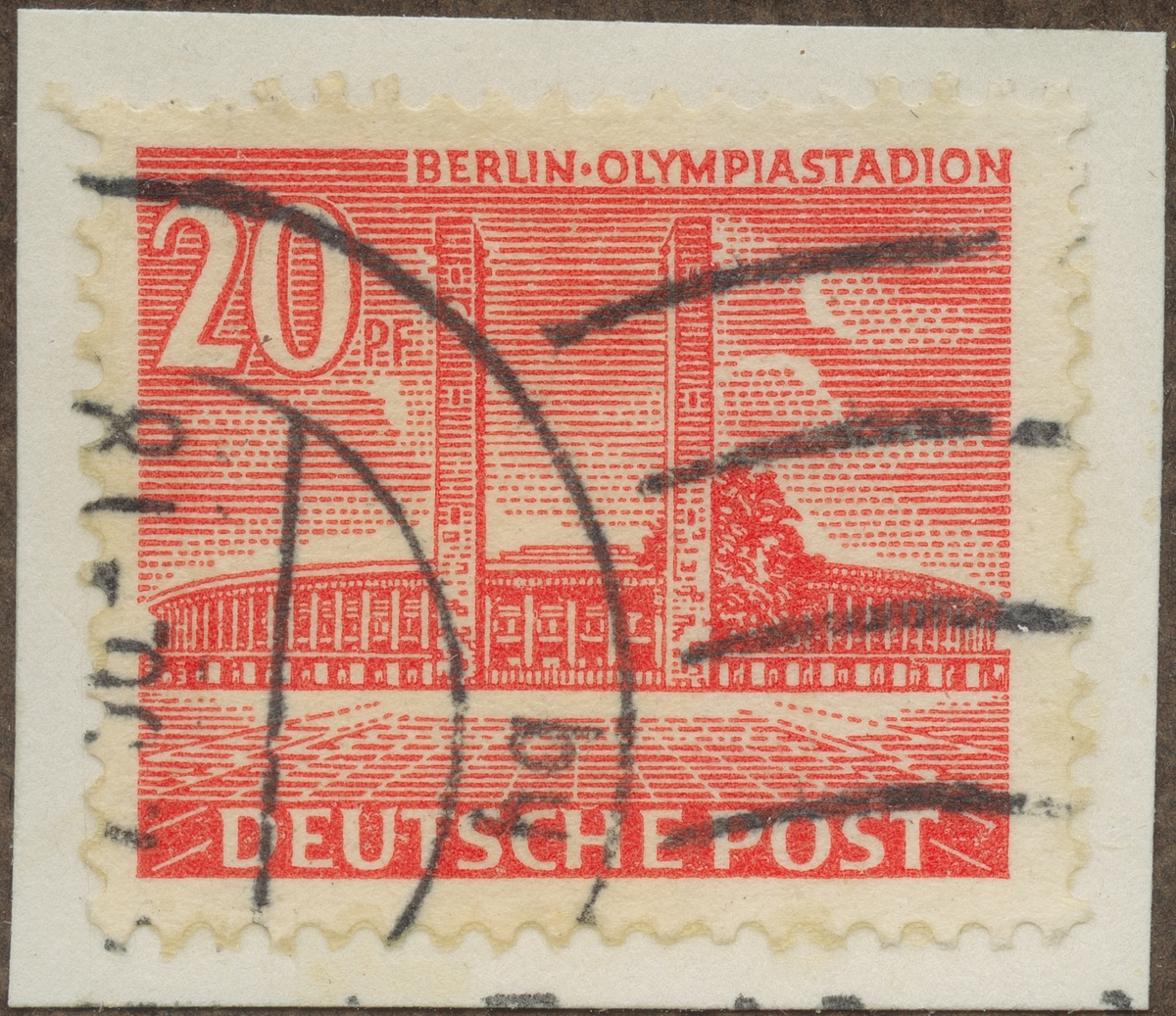 Frimärke från Väst Tyskland, 1952. Motiv av Berlins Olympia Stadion -1952-