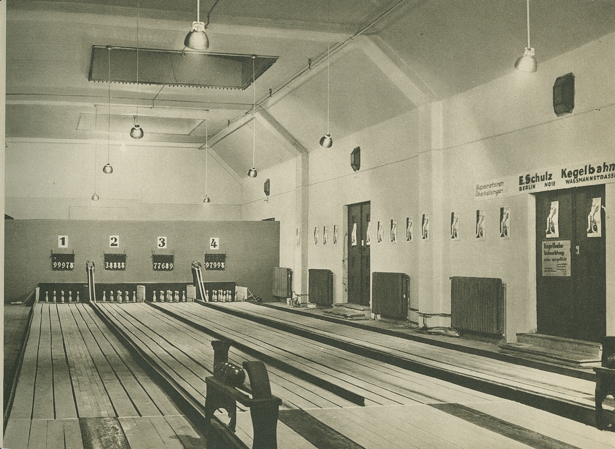 "Kagelbahn", Anlage auf einer Ausstellung, Glockenspiegelleuchten J 240 zu 100 watt".
