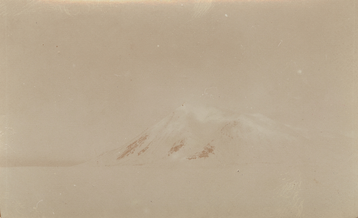 Fotografi från expedition till Spetsbergen. Vy över snölandskap och snötäckt berg.