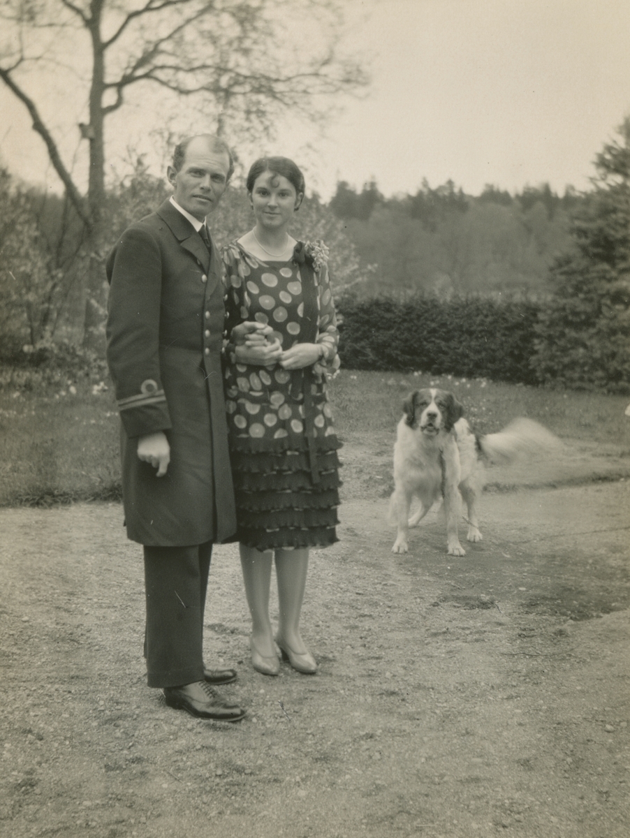 Diverse bilder från Fred Goldbergs samling. Motiv av man, kvinna och hund.