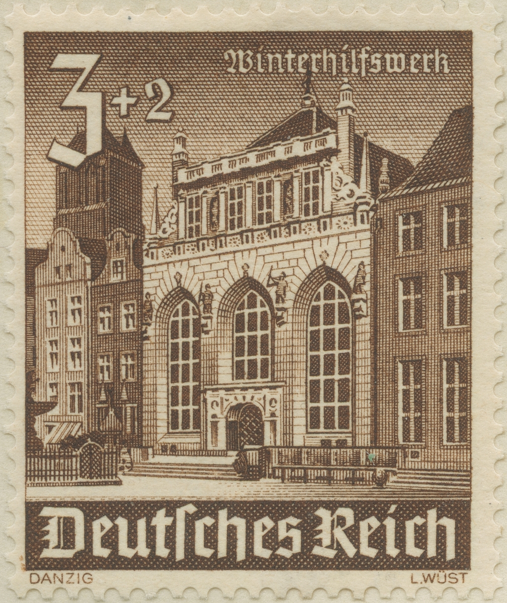 Frimärke från Tyskland, 1940. Motiv av Artushof i Danzig "-Serie: vinterhjälpen-"