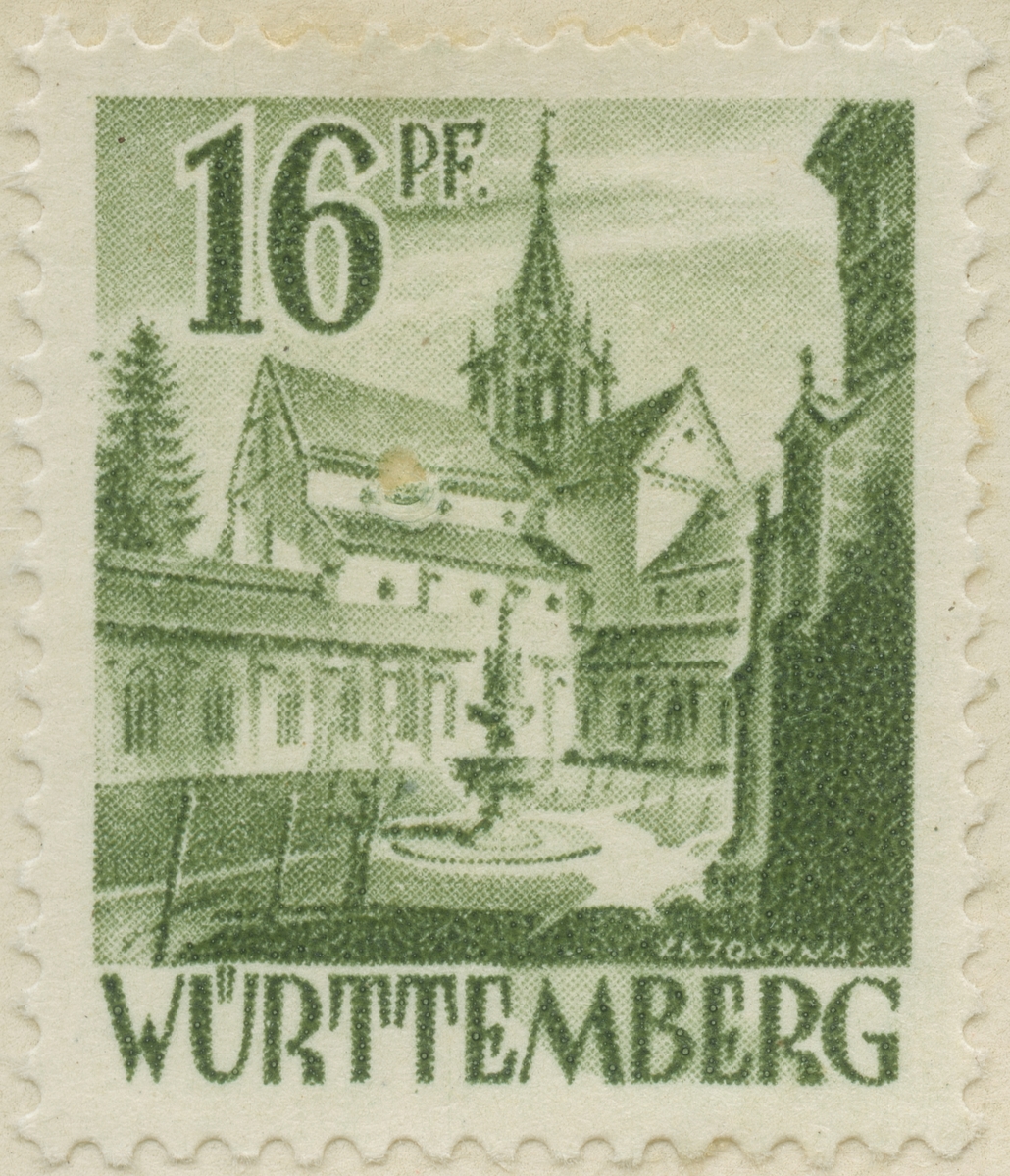 Frimärke från Württemberg, 1947. Motiv av Slottet Bebenhausen nära Tübingen