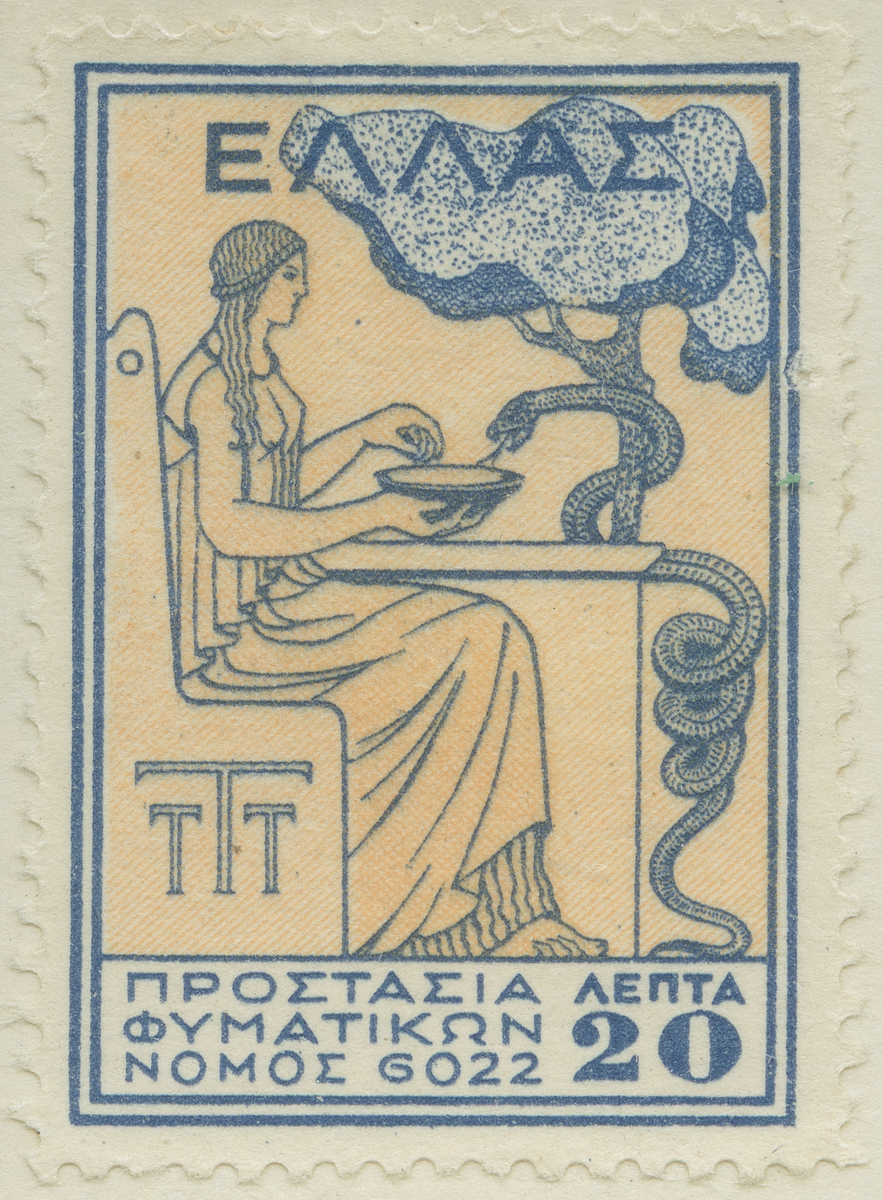 Frimärke från Grekland, 1934. Motiv av Sundhetens Gudinna