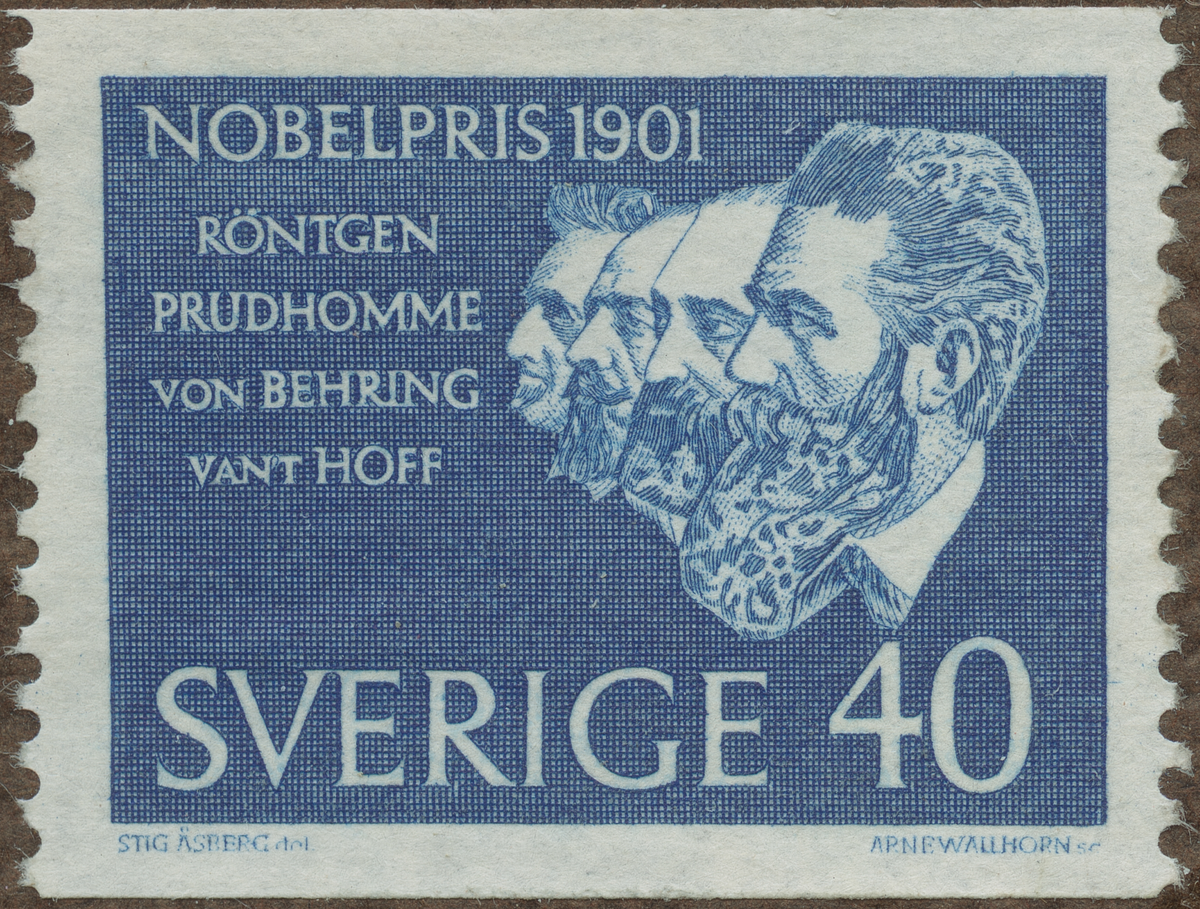 Frimärke från Sverige, 1961. (Nr. 2 fr. höger):- Motiv av René Francois Armand Sully-Prudhomme: 1839-1907 Fransk diktare Nobelpristagare i litteratur 1901 - 60-årsminnet av första Nobelprisutdelningen 1901-
