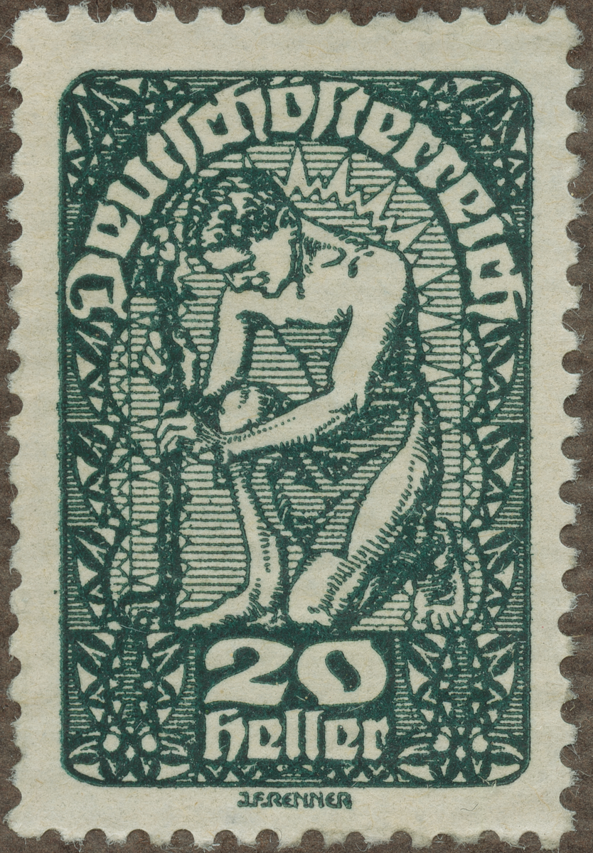 Frimärke från Österrike, 1919. Motiv av Trädplantering Allegori för återuppbyggande