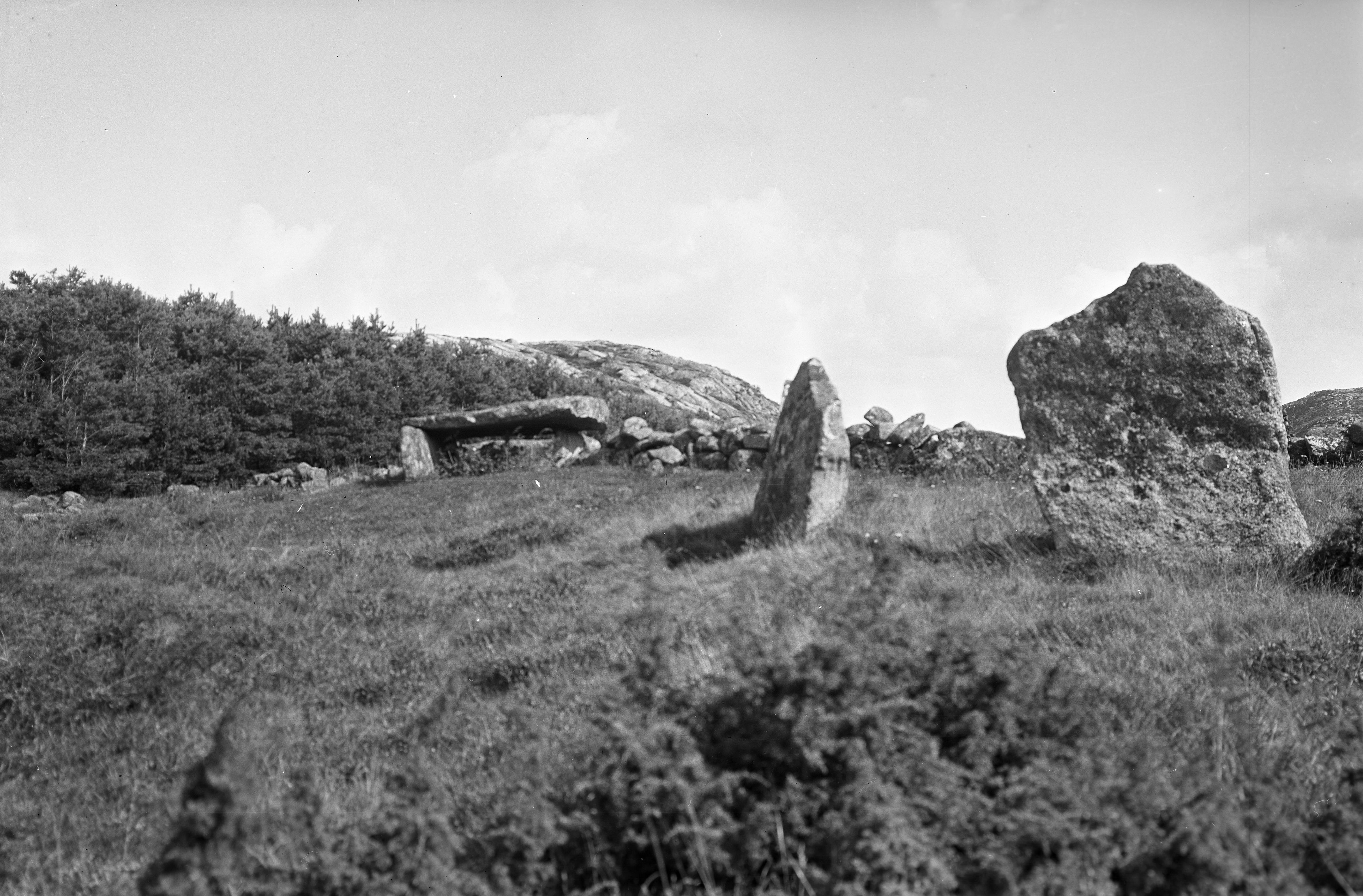 Dös, i omgivande rund stensättning. Kammaren, som av de stenar som står kvar att döma, har varit osedvanligt stor, ca 5 m diam,markeras av 6-7 numera synliga stenar. Anläggningen domineras av den kvarstående takhällen, som till formen är närmast rund. Runt anläggningen ligger 6 tämligen flata stenar, som sannolikt bildat en yttre ram kring kammaren.