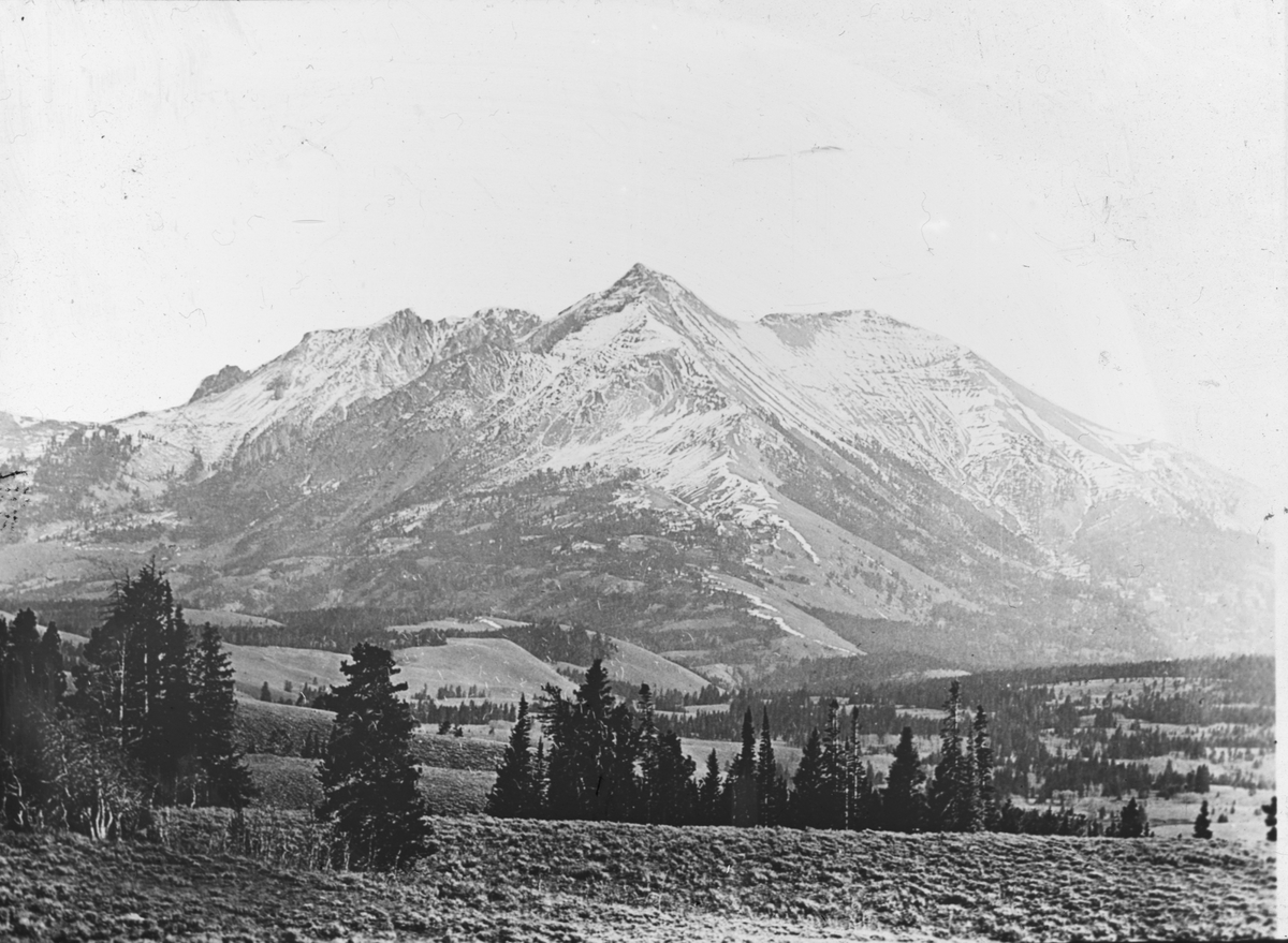 Skioptikonbild. Motiv av okänt berg, möjligen i Yellowstone, Amerkia.
