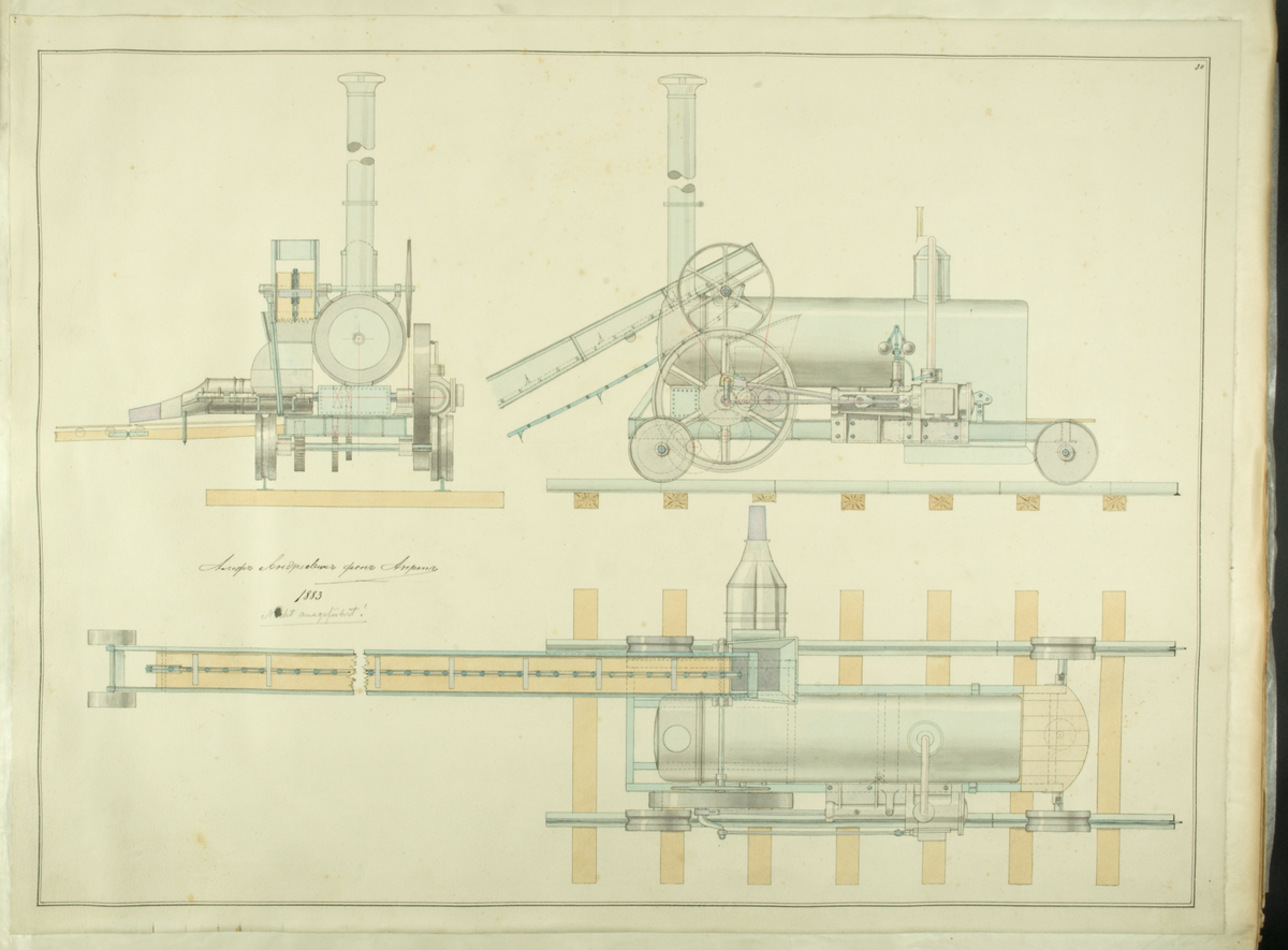 Skiss på ryska 1883, ur boken med ritningar mm 1868-1887, av den svenske torvmaskinkonstruktören Aleph Anrep.