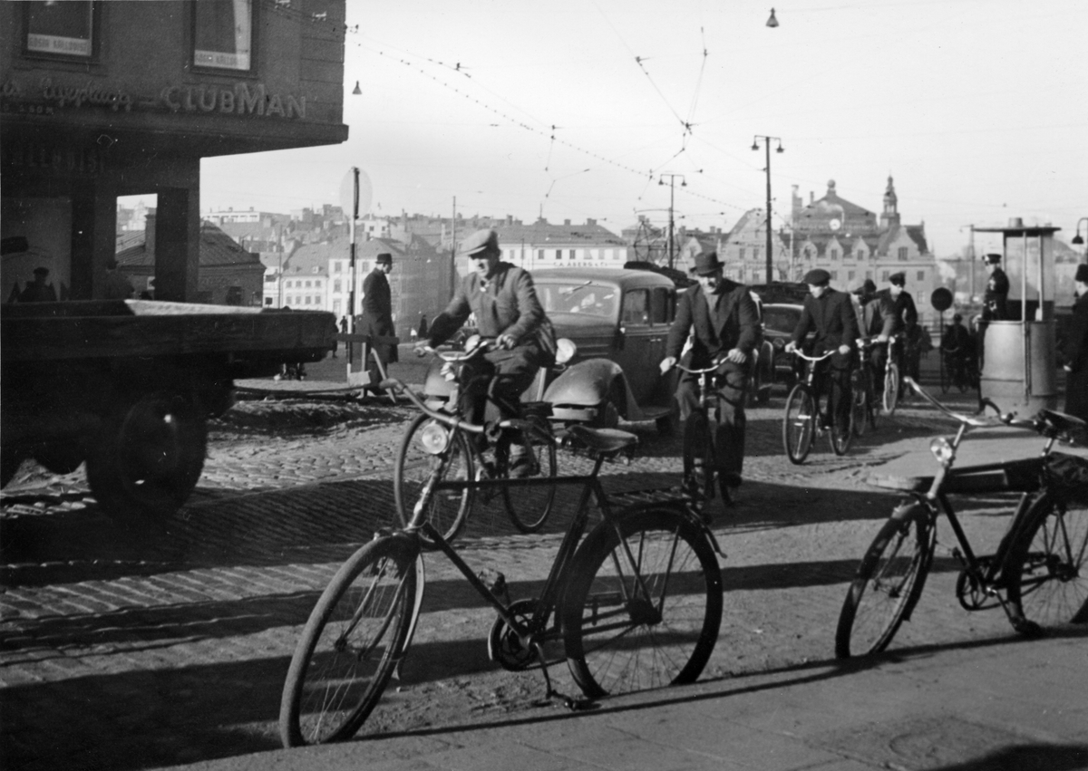 Cyklister vid Slussen i Stockholm. Bild från Optimus arkiv.