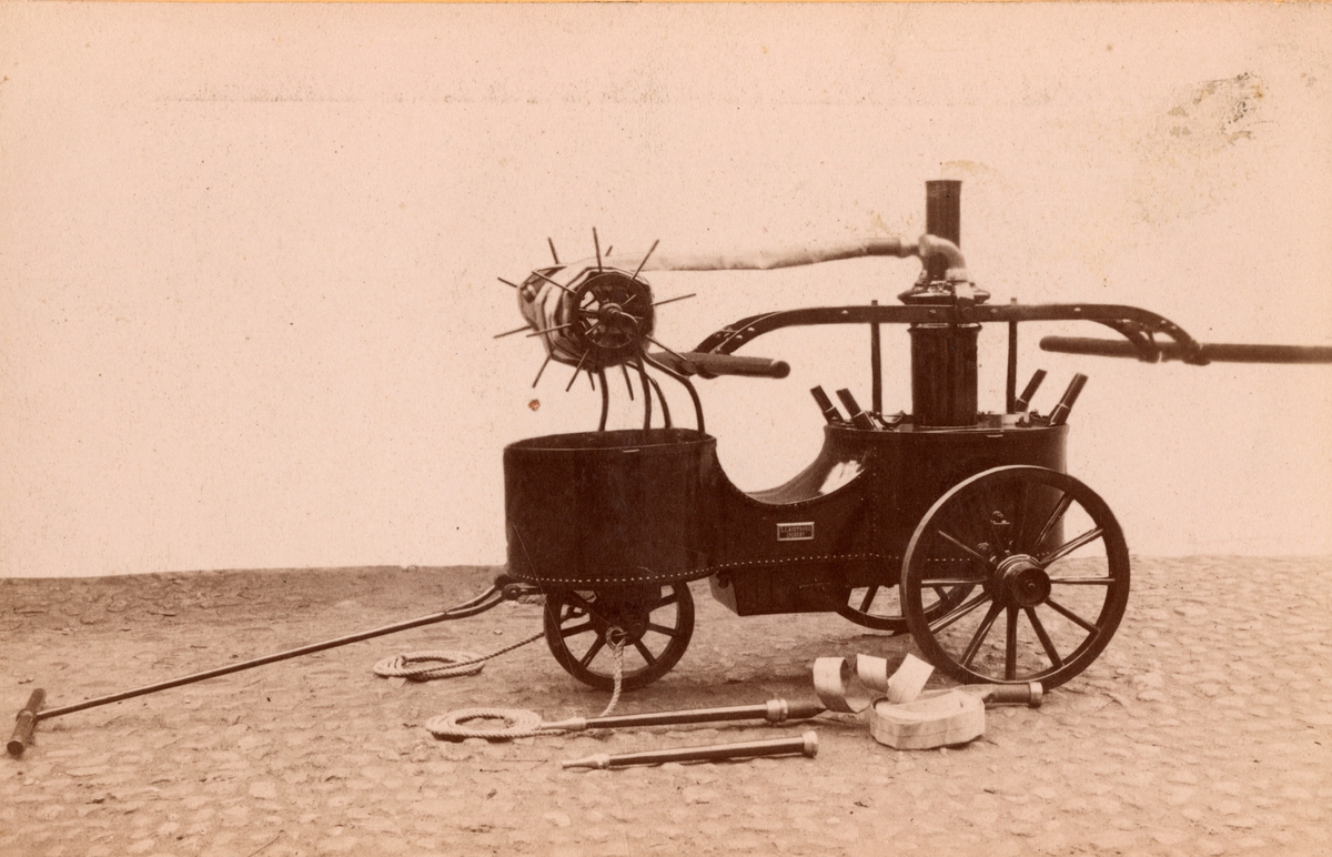Brandspruta, tillverkad vid Lyckeby Gjuteri och Mekaniska verkstad.