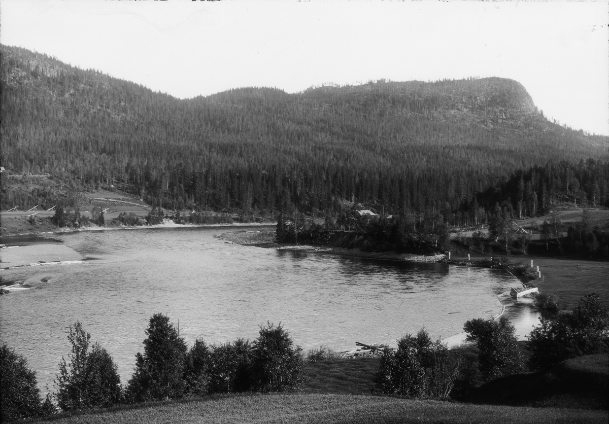 Diapostiv, fönsterbild med motiv från Dalarna, sommarlandskap. Bilden är tagen från Gåsvarv socken i Älvdalen.
