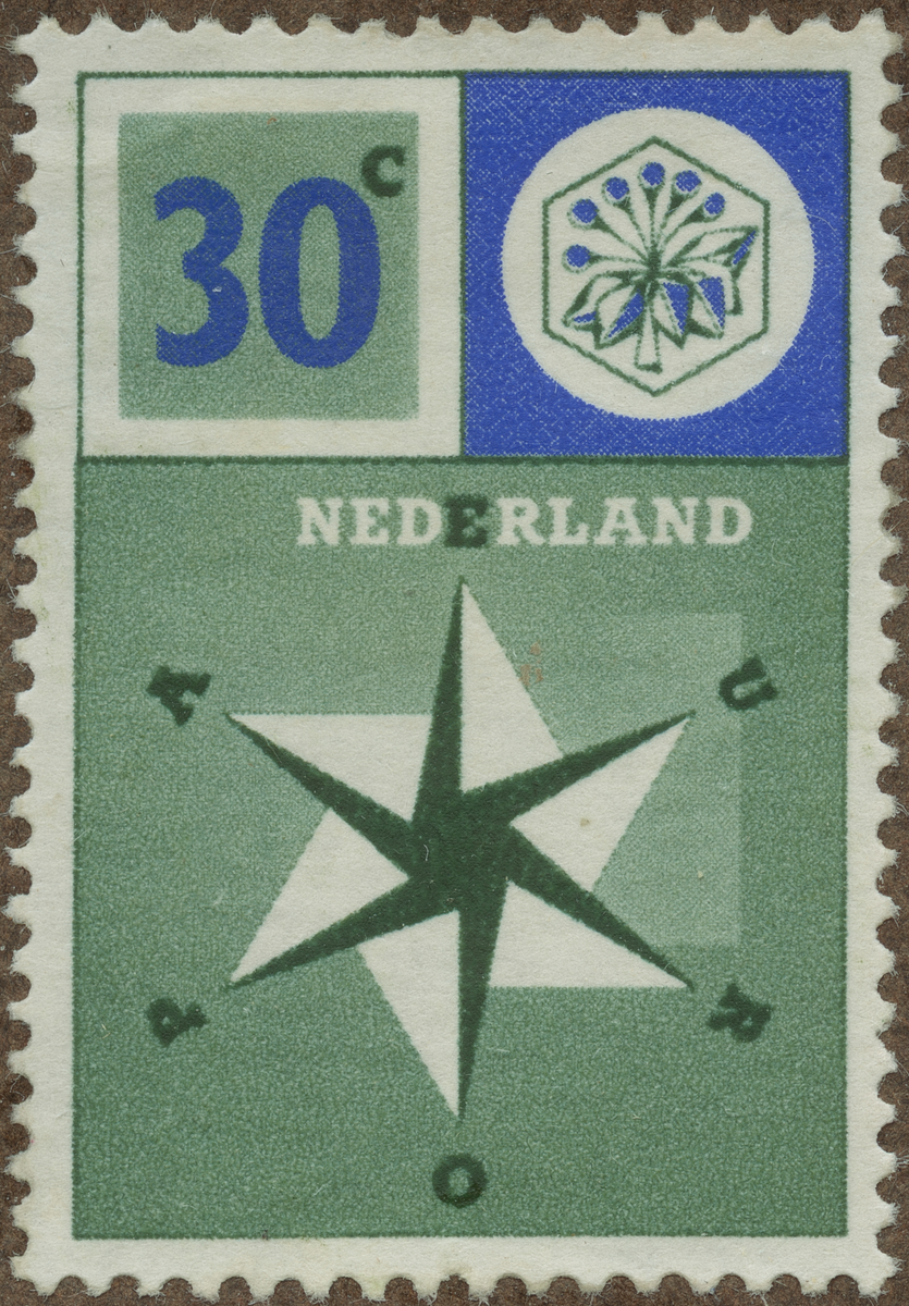 Frimärke från Nederländerna, 1957. Motiv av Sexuddig stjärna EUROPA