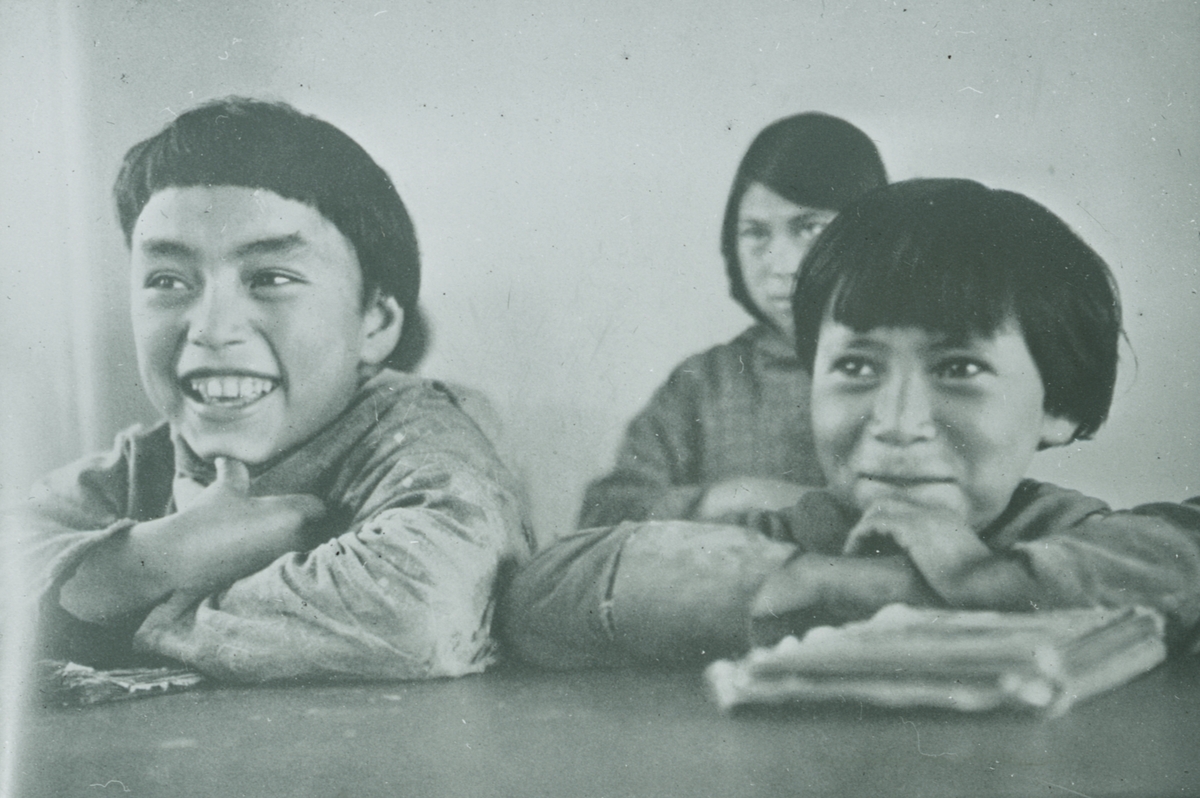 Fotografi från Grönland. Motiv av barn som ser ut att vara i skolan.