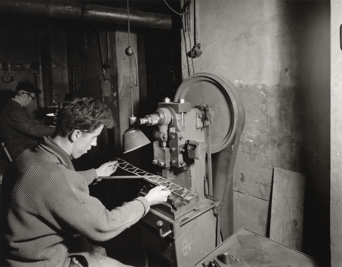 Albin Sjöströms Mekaniska Verkstad. Arbete vid excenterpressarna.