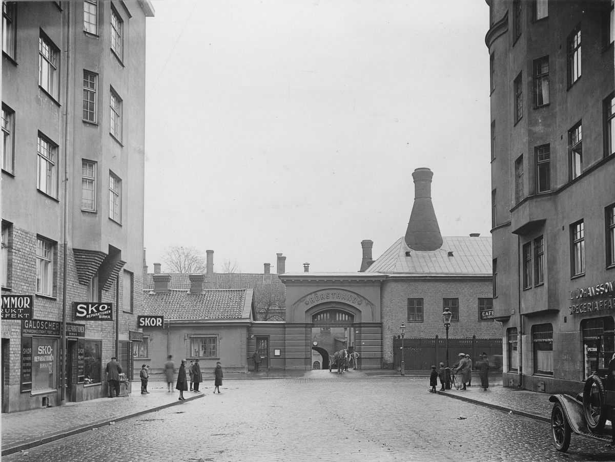 Rörstrands Porslinsfabriker. Huvudingången till fabriken sedd från Birkagatan.