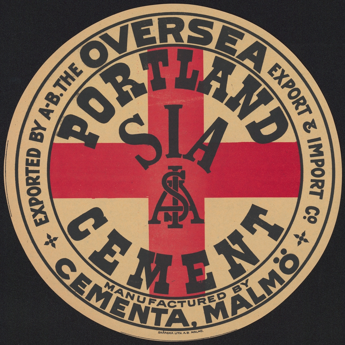 Fabriksmärke för cementpåsar. Portland Cement. Cement, Malmö.