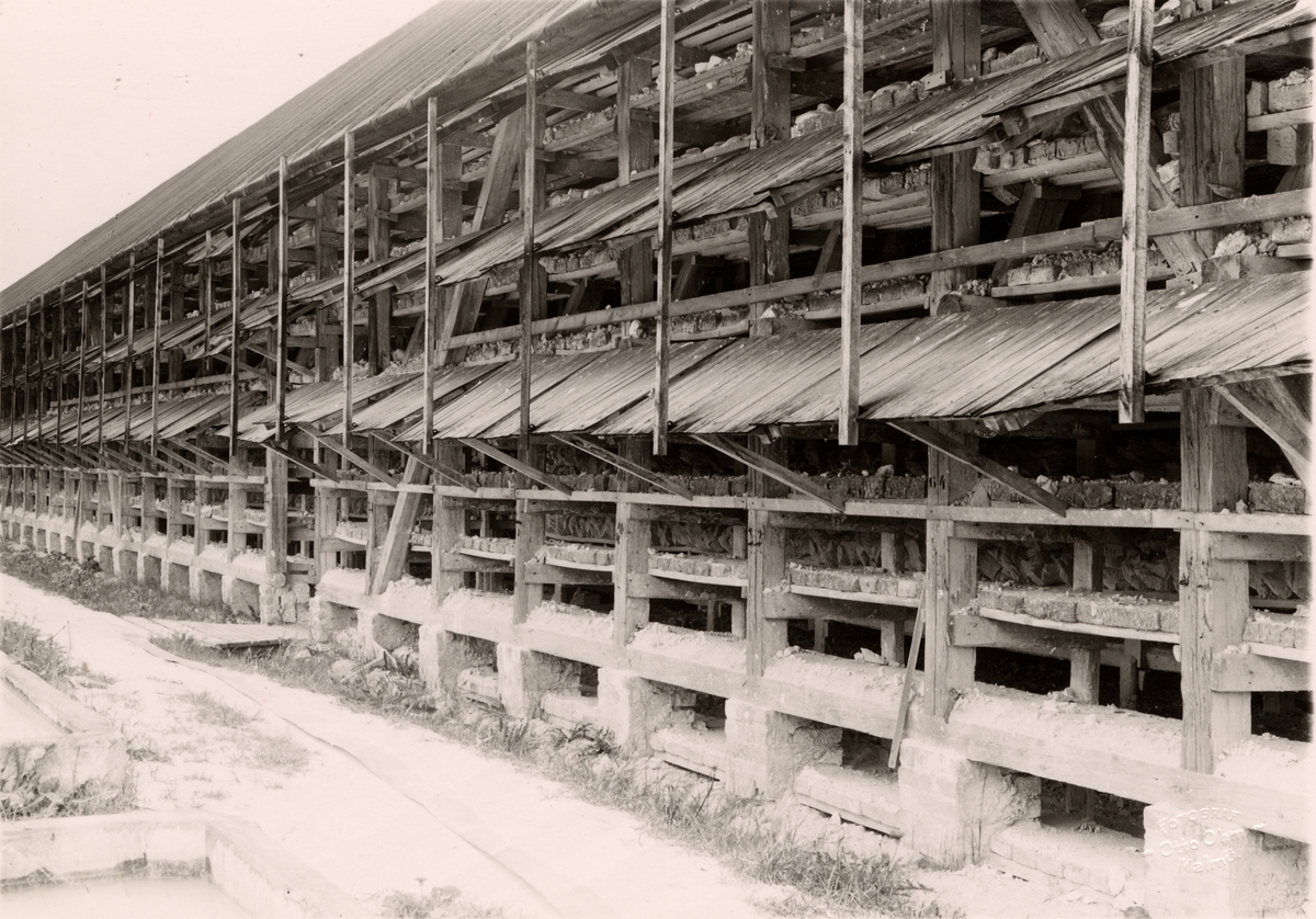 Aktiebolaget Kritbruksbolaget i Kvarnby, Malmö. Exteriör av torklada vari kritkronorna lufttorkas.