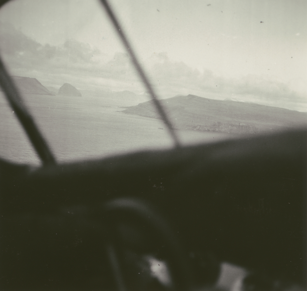 Fotografi från Albin Ahrenbergs resa till Grönland 1929. Vy över hav och berg.
