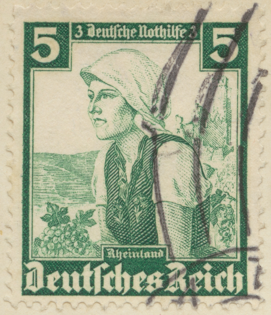 Frimärke från Tyskland, 1935. Motiv av kvinnodräkt, Rheinland.
