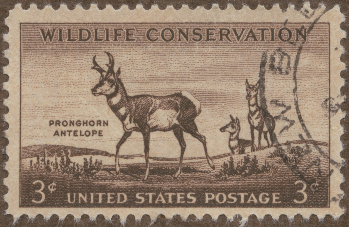Frimärke från U.S.A., 1958. Motiv av Gaffelantilop "De vilda djurens bevarande"