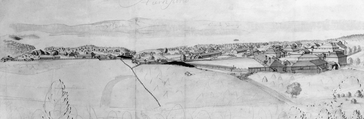 Laverad blyerts- och tuschteckning utförd sommaren 1729 av Augustin Ehrensvärd.