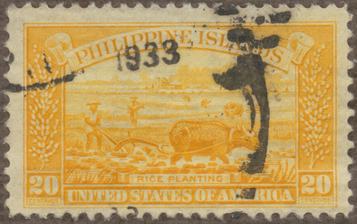 Frimärke från Filippinerna, 1932, Motiv av Arbete med plantering av ris. Plöjning med buffel som dragare
