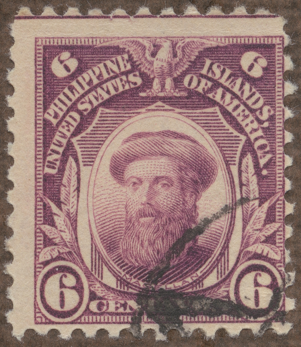 Frimärke från Philippinerna, 1906. Motiv av (Magellan) Fernão de Megalhães (omkr. 1480-1521) Portugisisk världsomseglare -Magellans Sund 1519-
