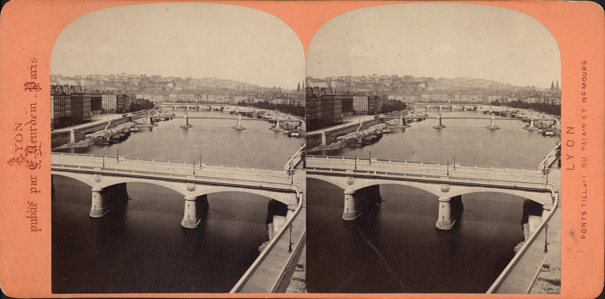 Stereobild av broar över floden Saône (Rhône), Lyon.