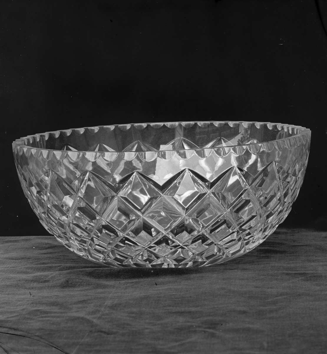 Titel: Bild om glaset, dess tillverkning och historia, med motiv av färdigt glas, tillverkningsprocessen och hantverket.
