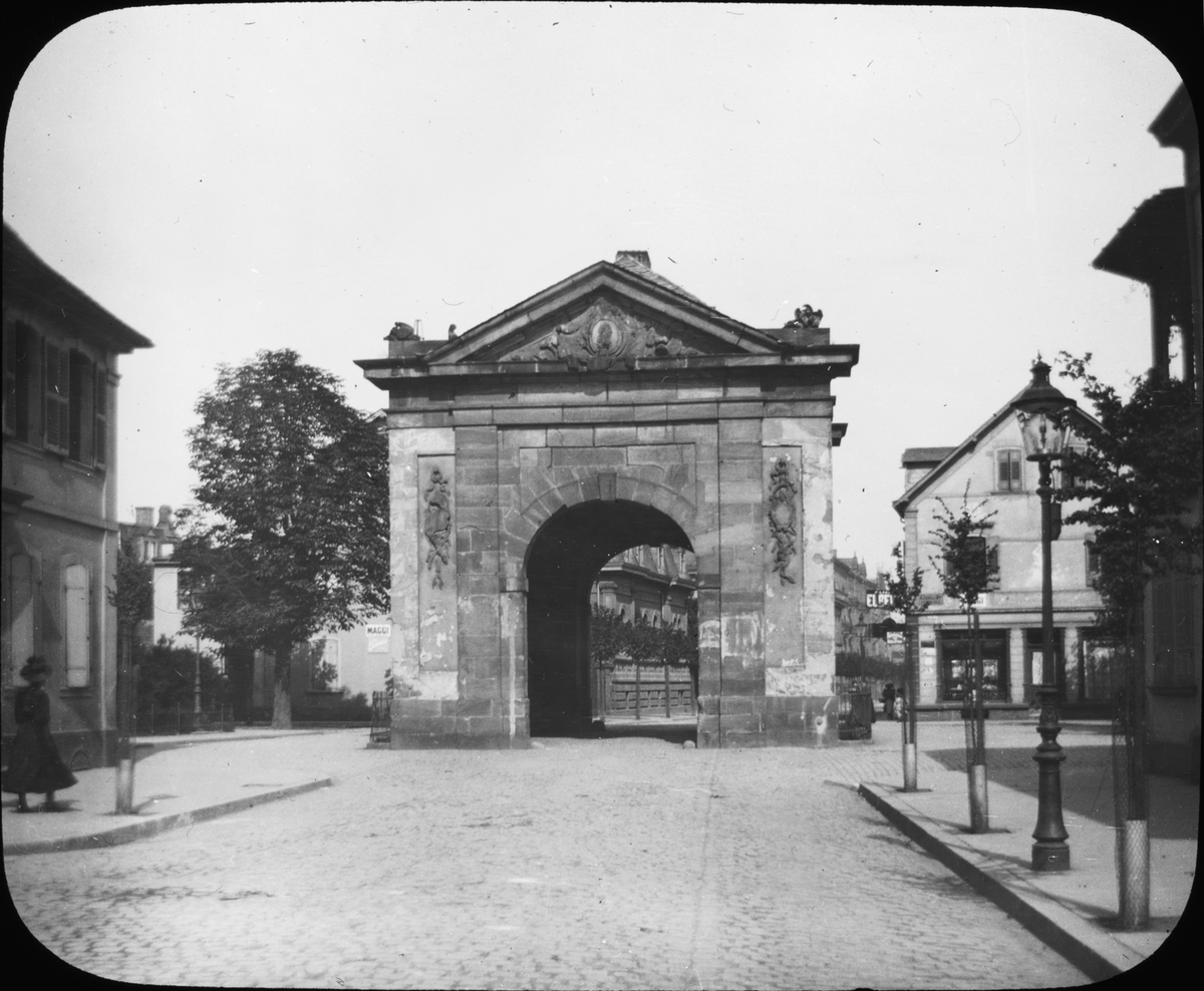 Skioptikonbild med motiv av Wormser Tor, port till staden Frankenthal.
