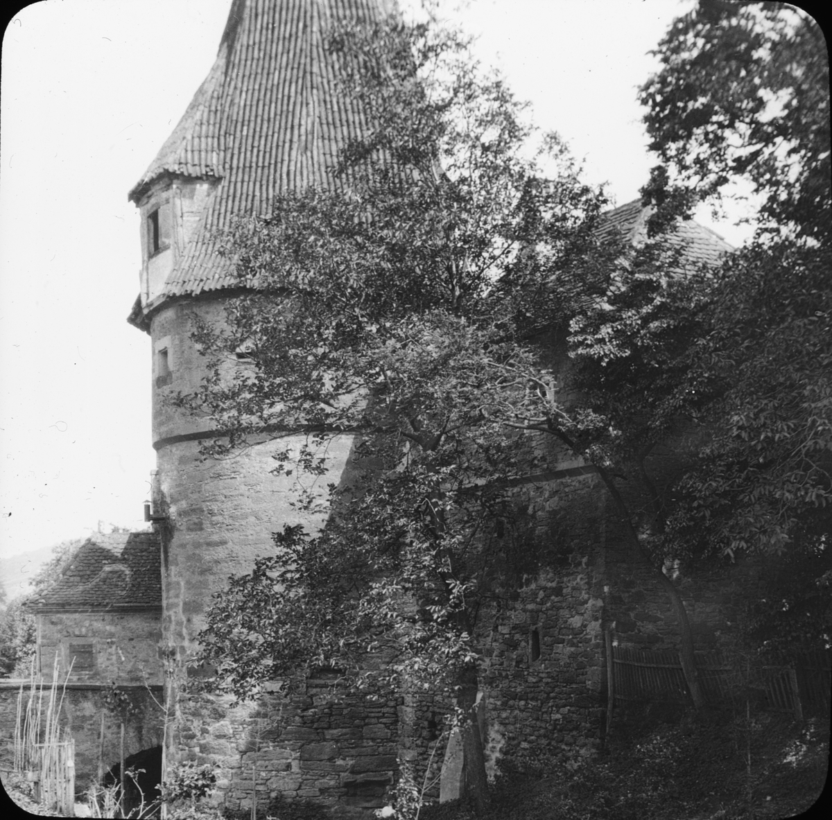 Skioptikonbild med motiv av Rödelseer Tor, Iphofen.
