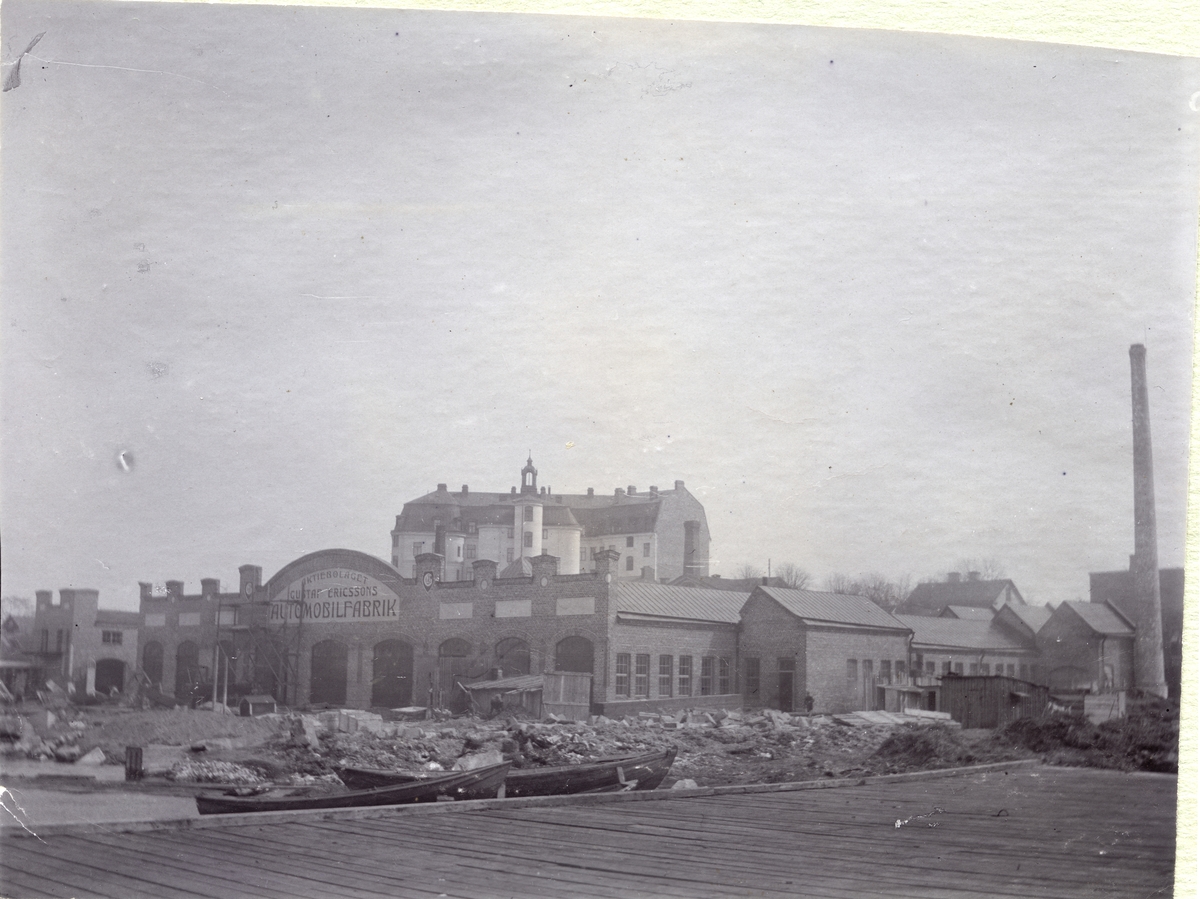 Gustaf L. M. Ericssons automobilfabrik vid Liljeholmen, 1907. Bild från tidskriften Hemmets bildmaterial.