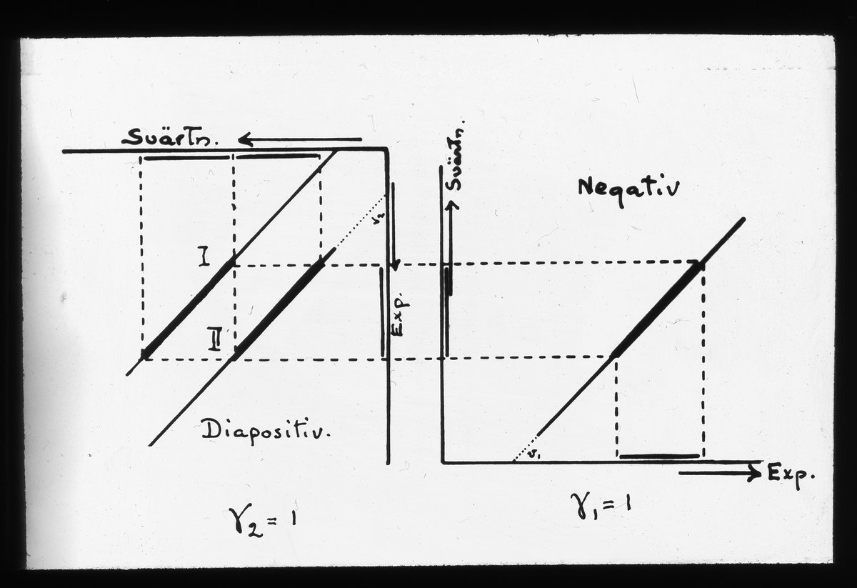 Skioptikonbild från Institutionen för fotografi vid Kungliga Tekniska Högskolan. Använd av professor Helmer Bäckström som föreläsningsmaterial. Bäckström var Sveriges första professor i fotografi vid Kungliga Tekniska Högskolan i Stockholm 1948-1958.