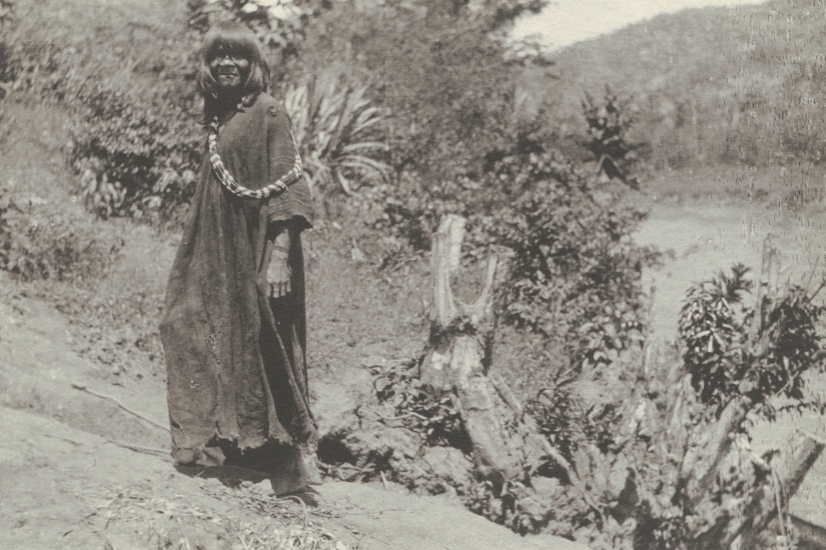 Fotografi från kuvert märkt med "Ernst Nordenskjöld". Motiv av man i djungel.