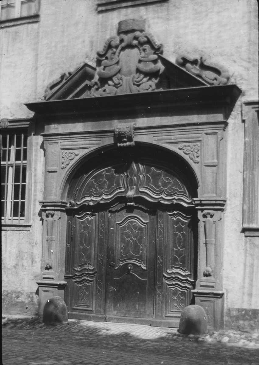 Skioptikonbild med motiv av port, möjligen i Trier.